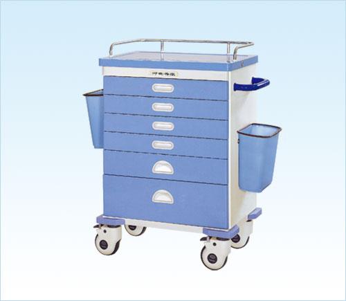 Las gavetas traen cerradura. El carro contiene ruedas de poliuretano silencioso, dos de ellas traen frenos. En cada gaveta trae sólidas redes diseñado para colocar la medicina. Tamaño: Largo 650 x Ancho 420 x Alto 1020mm